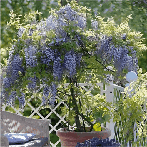 Llena cada rincón de color, textura y vida real. Las flores de Glicinia y Hortensia crean un ambiente armonioso y lleno de encanto, ideal para terrazas, balcones o jardines. 🌼