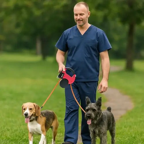 Ya no necesitas dos correas. Esta herramienta te permite manejar ambos perros de forma segura y cómoda con una sola mano, dejando la otra libre para lo que necesites