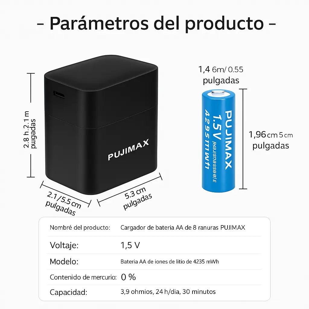 📦 Incluye cargador + 4 pilas AA + 4 pilas AAA todas recargables