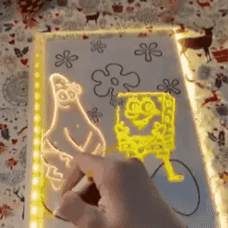 La luz LED y los colores neón hacen que cada trazo se vea más llamativo, motivando a niños y jóvenes a explorar ideas, formas y dibujos sin complicaciones