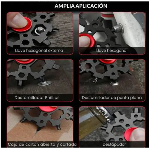 Disfruta de la comodidad de tener destornilladores, llaves, abrebotellas y más en un solo accesorio versátil