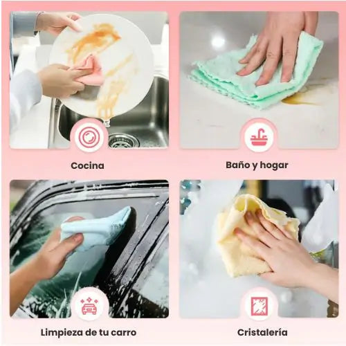 Con microfibra ultra absorbente que deja todo reluciente sin gastar más
