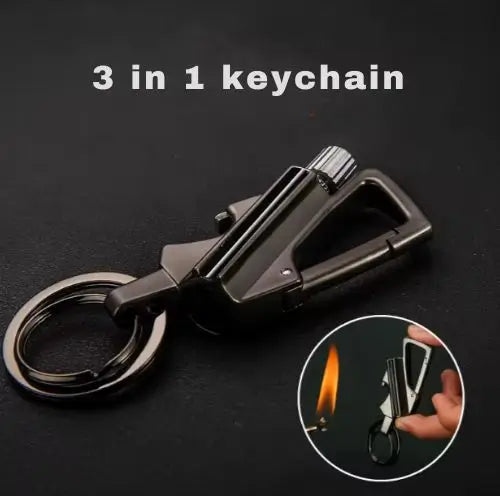 Lleva en un solo accesorio lo que normalmente ocuparía espacio con varios objetos: encendedor de aceite, abrebotellas y llavero. Más práctico, menos complicaciones