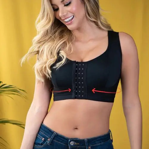 Usa la guía de tallas y selecciona la que se ajuste mejor a tu medida de busto y espalda - ✅Desabrocha el frente