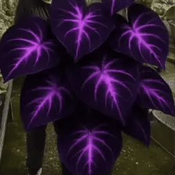 - ✅Sus hojas son grandes y negras y rojas🍃
