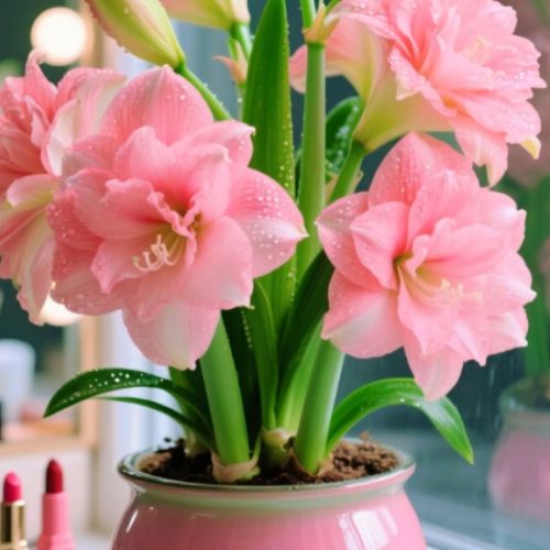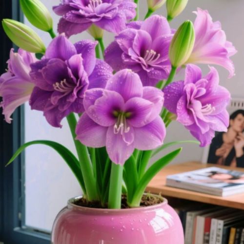 Sus pétalos dobles y tonos vibrantes son ideales para balcones, escritorios o repisas, aportando un detalle decorativo que complementa cualquier estilo