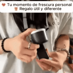 Siente la frescura que mereces en cualquier lugar. Compacto, recargable y listo para acompañarte donde el calor no da tregua